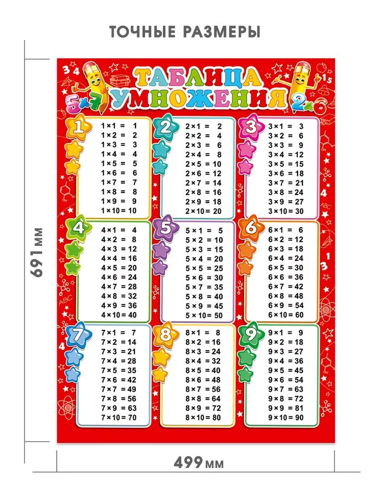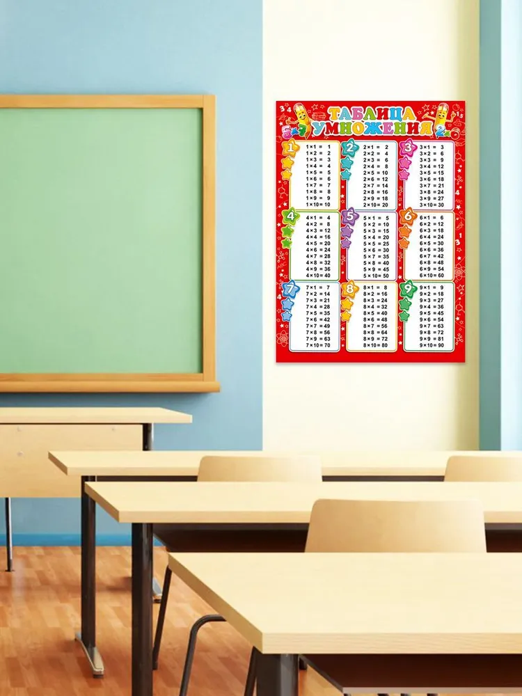 Обучающий плакат на стену по математике Таблица умножения (вертикальная)