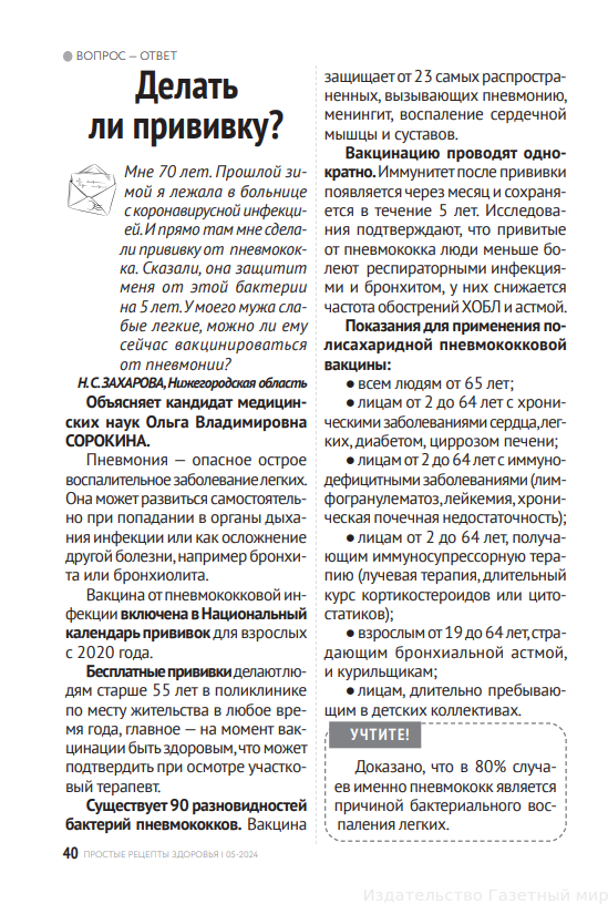 Издательство “Газетный мир” выпускает журнал “Простые рецепты здоровья”, который расскажет вам о том, как укрепить организм в осеннее и зимнее время, как найти слабые места своего здоровья и легче перенести сезонные обострения.